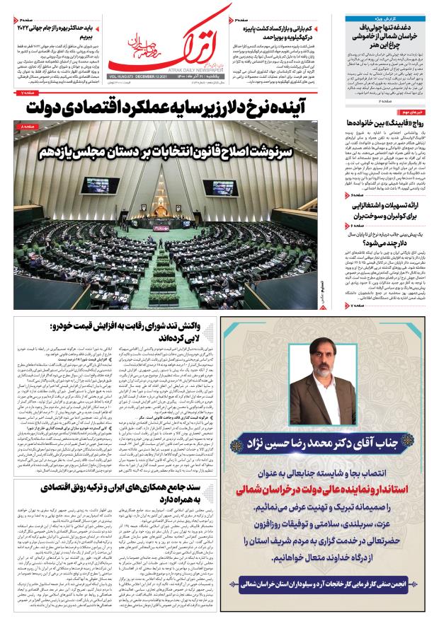 با توجه به افزایش هزینه‌های تولید روزنامه در چند ماهِ اخیر، و تلاش ما در راستای ادامه انتشار روزنامه «اترک» به‌روال معمول و حفظِ کیفیت و تیراژ روزنامه، ناگزیر به حذفِ امکان بازدید رایگان سایت و به‌تبع آن فروشِ آنلاین مطالب از طریق سایت هستیم. بنابر وضعیتِ اقتصادی اخیر، خاصه گرانی و نبودِ کاغذ موردنیاز برای انتشار روزنامه، در صورتی‌ که متقاضیِ بازدید از سایت روزنامه هستید و جهتِ یاری به امر فرهنگی و امکان ادامه انتشار روزنامه در این مسیر نیز ما را همراهی کنید.