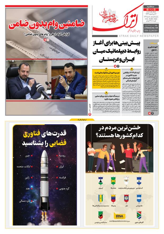 با توجه به افزایش هزینه‌های تولید روزنامه در چند ماهِ اخیر، و تلاش ما در راستای ادامه انتشار روزنامه «اترک» به‌روال معمول و حفظِ کیفیت و تیراژ روزنامه، ناگزیر به حذفِ امکان بازدید رایگان سایت و به‌تبع آن فروشِ آنلاین مطالب از طریق سایت هستیم. بنابر وضعیتِ اقتصادی اخیر، خاصه گرانی و نبودِ کاغذ موردنیاز برای انتشار روزنامه، در صورتی‌ که متقاضیِ بازدید از سایت روزنامه هستید و جهتِ یاری به امر فرهنگی و امکان ادامه انتشار روزنامه در این مسیر نیز ما را همراهی کنید.