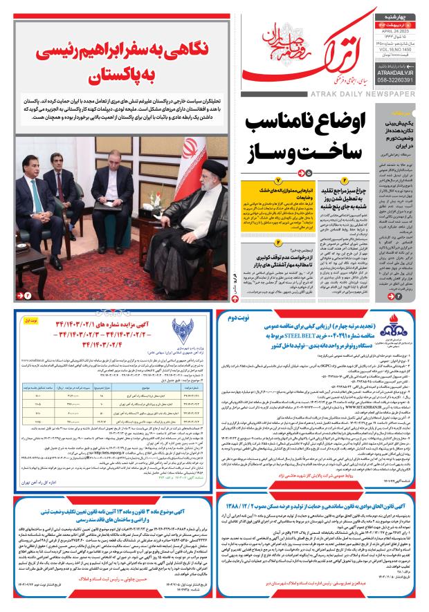 با توجه به افزایش هزینه‌های تولید روزنامه در چند ماهِ اخیر، و تلاش ما در راستای ادامه انتشار روزنامه «اترک» به‌روال معمول و حفظِ کیفیت و تیراژ روزنامه، ناگزیر به حذفِ امکان بازدید رایگان سایت و به‌تبع آن فروشِ آنلاین مطالب از طریق سایت هستیم. بنابر وضعیتِ اقتصادی اخیر، خاصه گرانی و نبودِ کاغذ موردنیاز برای انتشار روزنامه، در صورتی‌ که متقاضیِ بازدید از سایت روزنامه هستید و جهتِ یاری به امر فرهنگی و امکان ادامه انتشار روزنامه در این مسیر نیز ما را همراهی کنید.